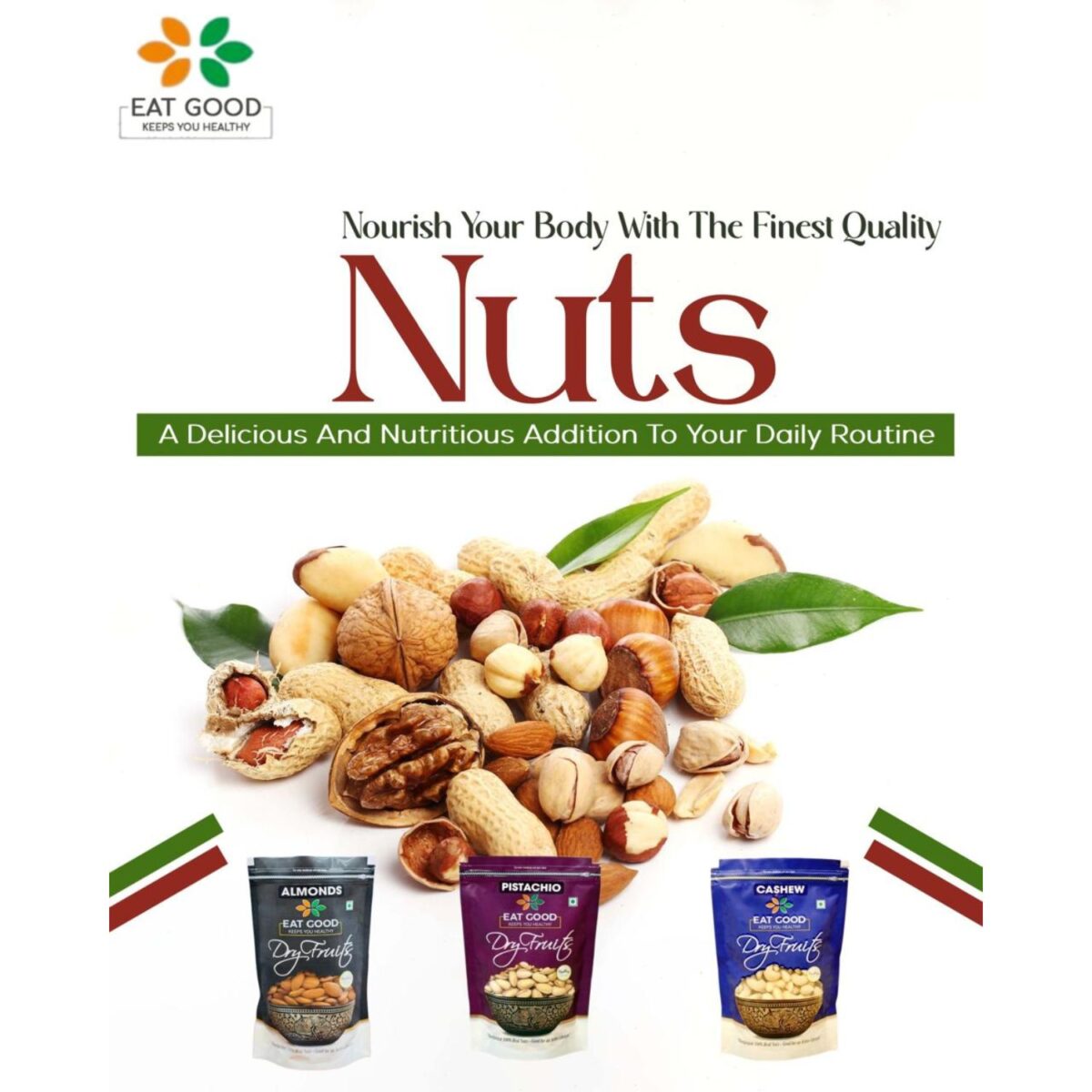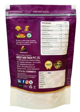 Adroit Eat Good Pistachios are premium-quality nuts, carefully selected and hygienically packed to deliver unmatched freshness, crunch, and flavor. Naturally rich in protein, fiber, healthy fats, and antioxidants, these pistachios support heart health, weight management, and overall wellness. Perfect for guilt-free snacking, theyโre also great in salads, desserts, and savory dishes. Whether enjoyed on their own or as part of your favorite recipes, Adroit Eat Good Pistachios offer a satisfying and wholesome experience.
