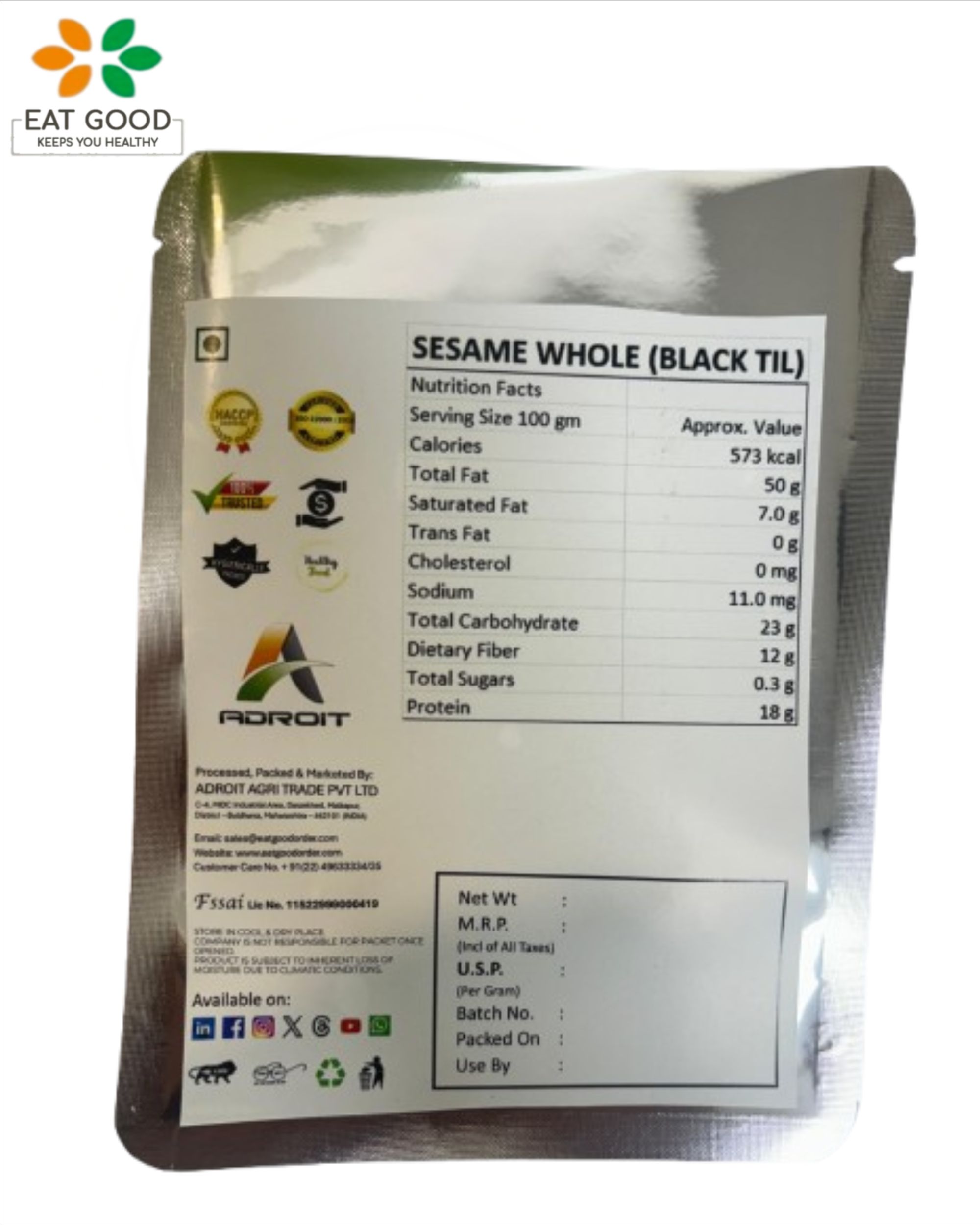 Adroit Eat Good Sesame Whole (Black Til) | Rich Nutty Flavor & Crunch | Ideal for Salads, Bakes & Cooking | 100 grams | Bold Taste & Nutrient-Rich Seeds