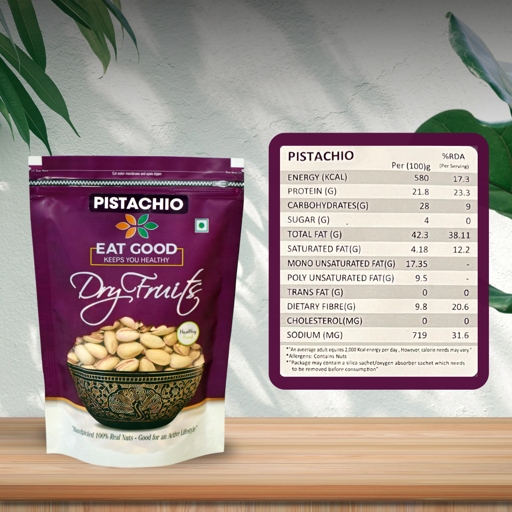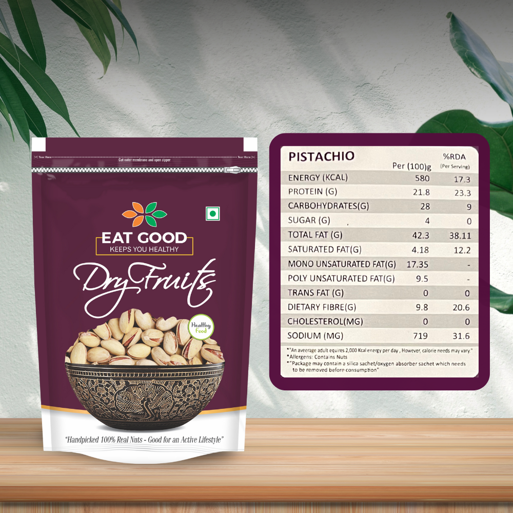 Treat yourself to the deliciously crunchy, naturally wholesome goodness of EAT Good Premium Pistachios. Sourced from the finest pistachio farms, these premium nuts are a perfect blend of taste and nutrition. Packed with essential nutrients like protein, fiber, and antioxidants, they make an ideal snack for health-conscious individuals. Whether you’re enjoying them straight from the pack, adding them to your favorite dishes, or using them as a garnish, EAT Good Premium Pistachios are your go-to choice for elevating any occasion.